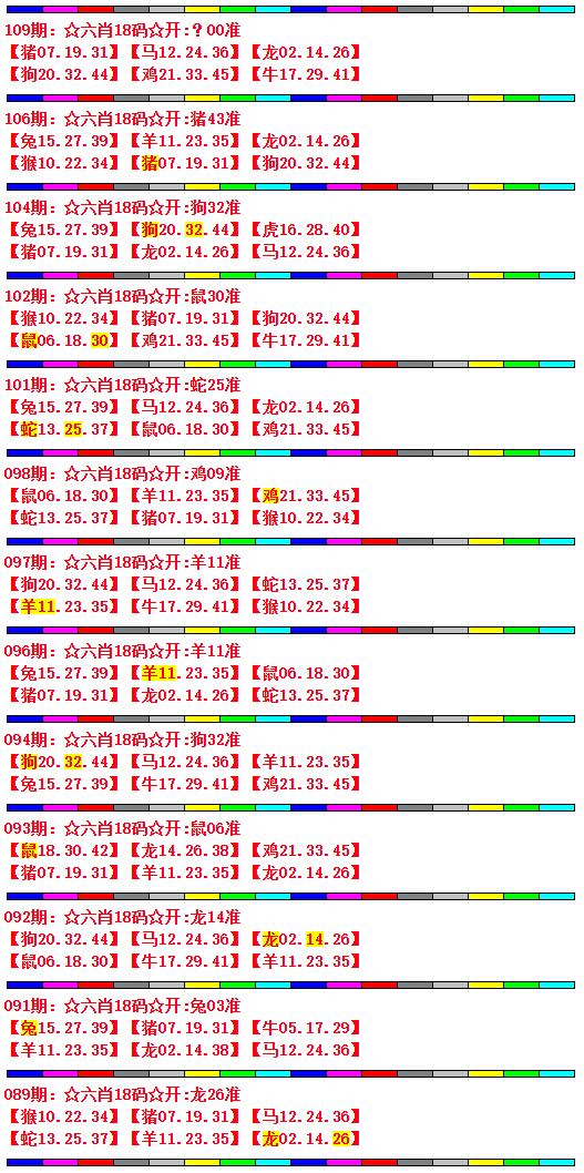 093期:[狗20.牛05.虎16.猴10.鼠18.蛇13]开(鼠06) | |